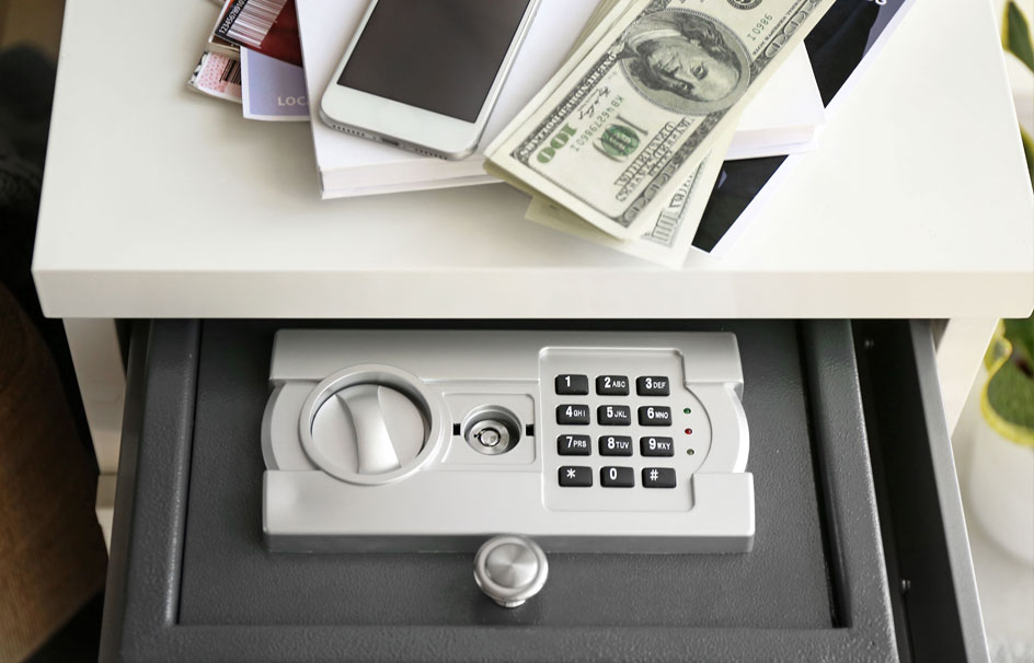 Conserver votre argent liquide, bijoux et objets de collection dans des coffres antivol.